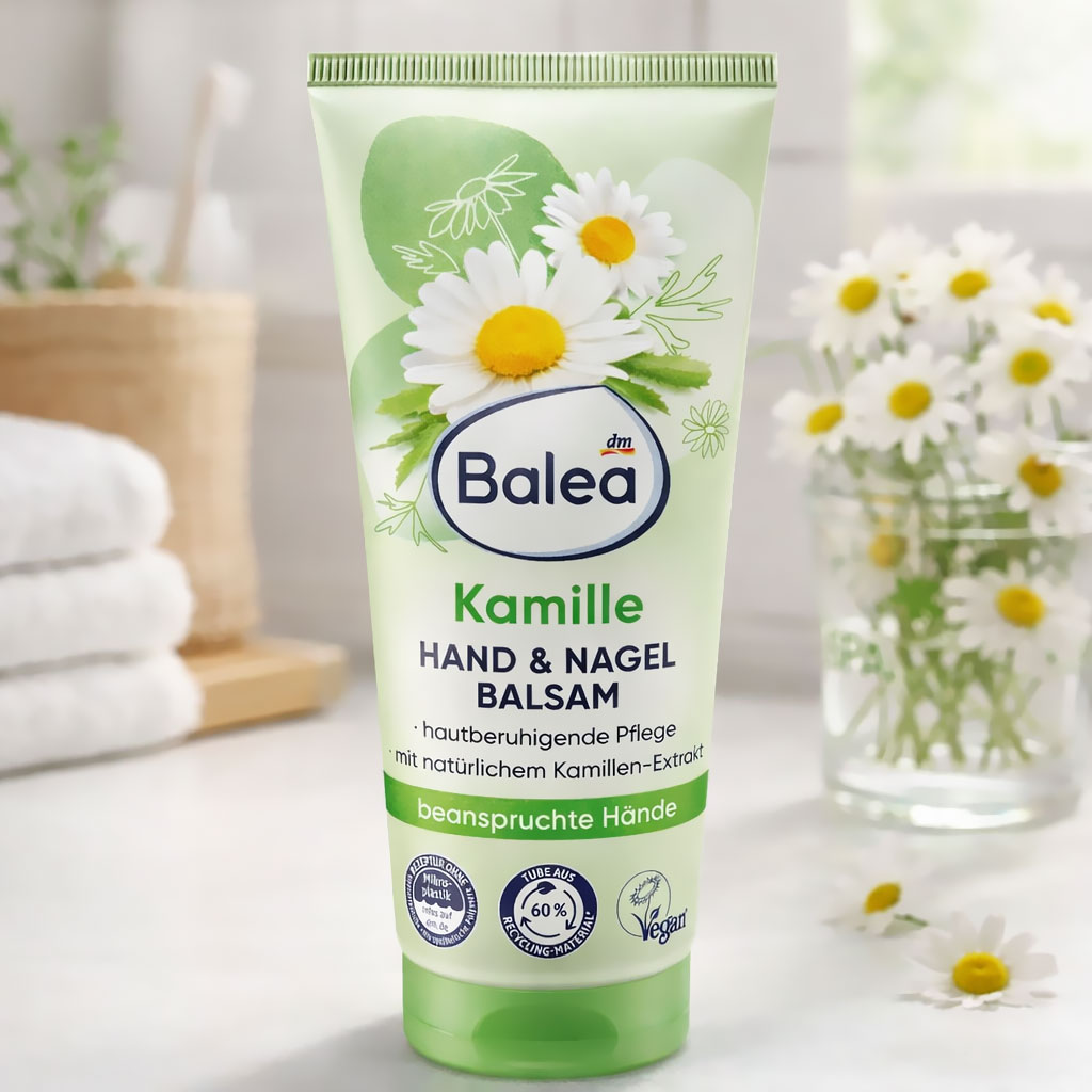 Le Baume Mains & Ongles Balea à la camomille est un soin doux spécialement conçu pour hydrater, protéger et apaiser les mains sollicitées au quotidien. Enrichi en extrait naturel de camomille, il aide à calmer les irritations tout en laissant la peau souple, douce et confortable.