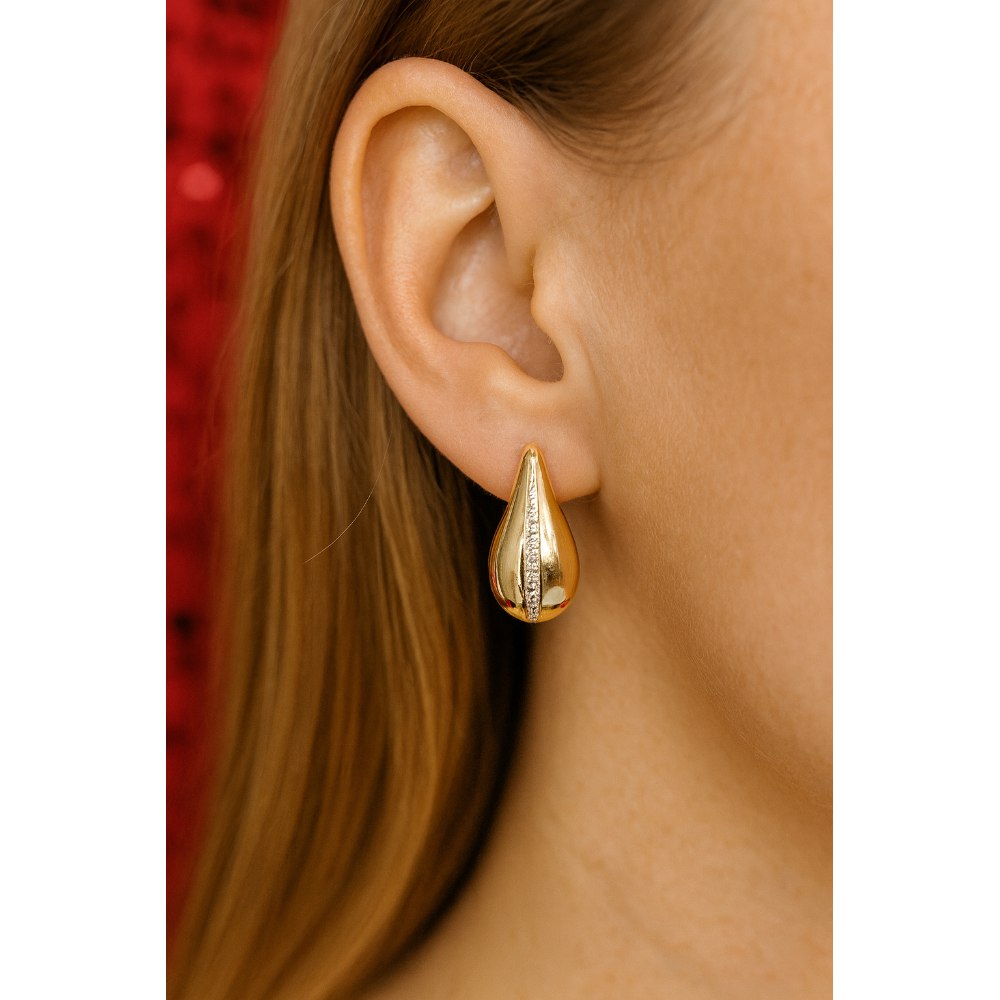 Des boucles d’oreilles raffinées en forme de goutte, sublimées par une ligne scintillante d’oxydes de zirconium qui capte délicatement la lumière. Leur silhouette fluide et féminine apporte une touche d’élégance naturelle au visage, idéale pour un style chic et affirmé.