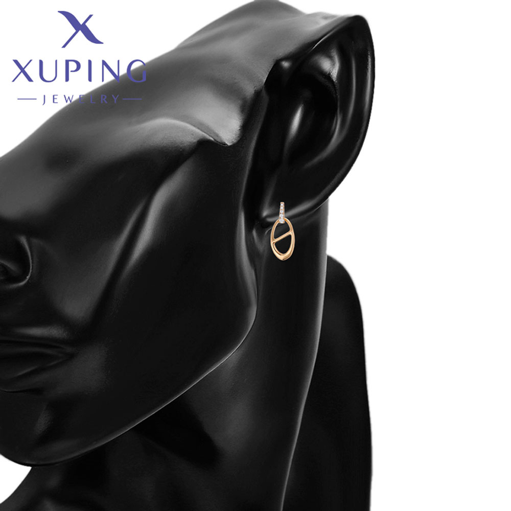 Boucles d’oreilles élégantes signées Xuping, réalisées en alliage de haute qualité et plaquées or 18K pour une finition brillante et durable. Le pendant ouvert au design moderne offre une allure raffinée tout en restant léger et confortable à porter.