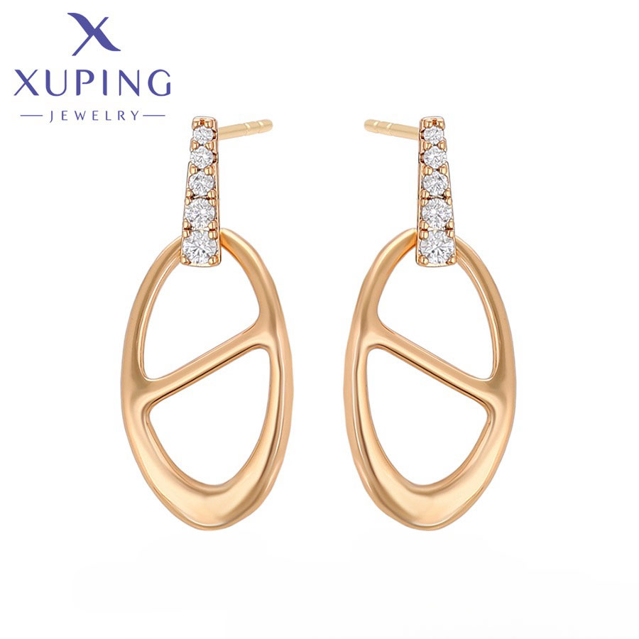 Boucles d’oreilles Xuping plaqué or 18K – Design moderne avec zircons / Xuping