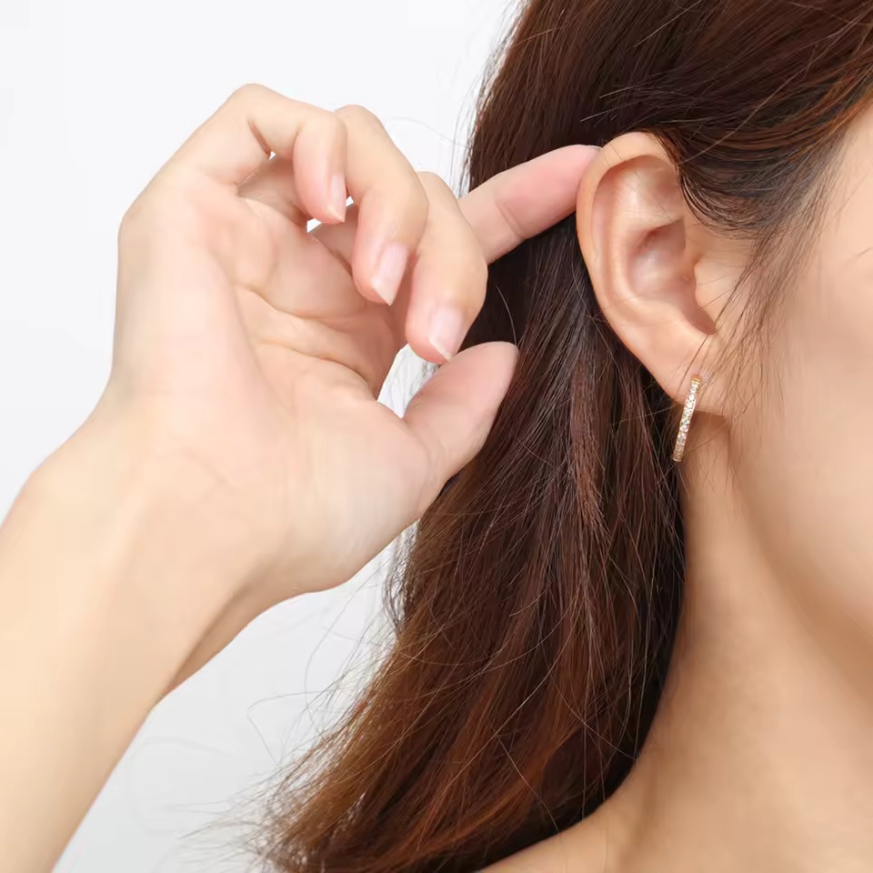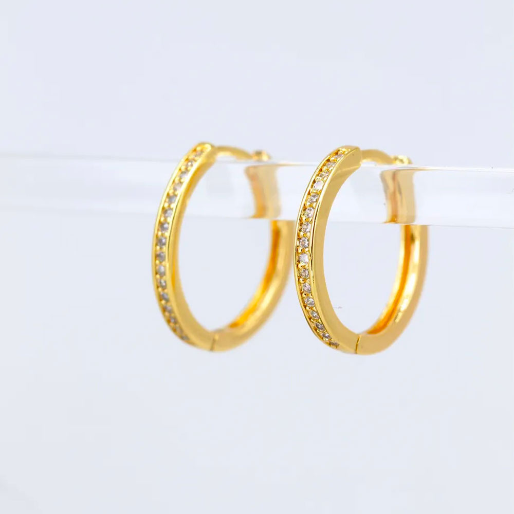 Boucles d’oreilles Xuping plaquées or 18K – Créoles élégantes serties de zircons / Xuping