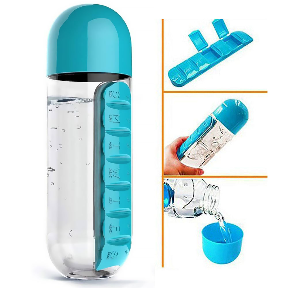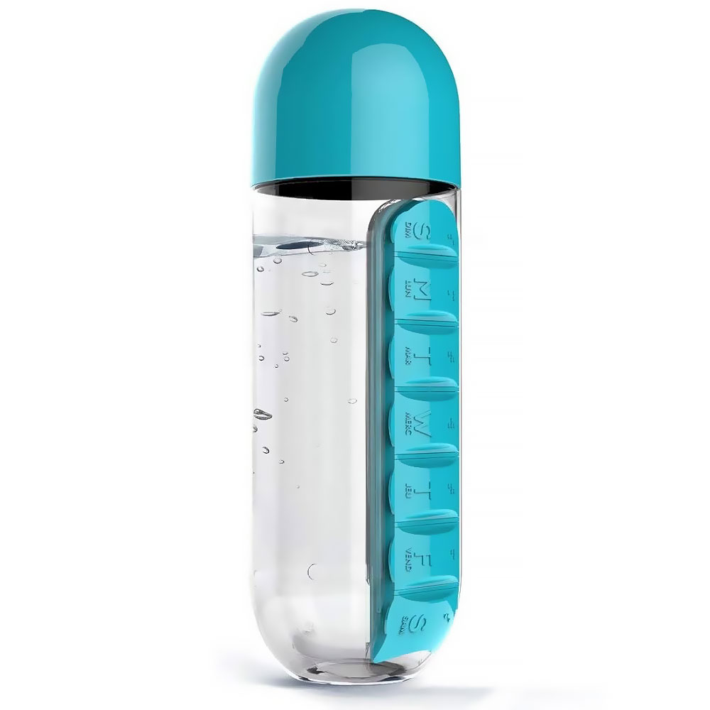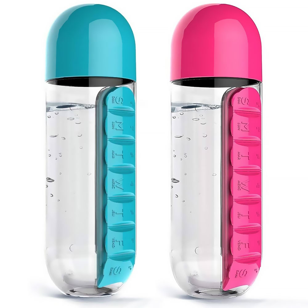 Bouteille Pilulier 2-en-1 – Gourde 600 ml avec Organisateur Hebdomadaire / Pill & Vitamin