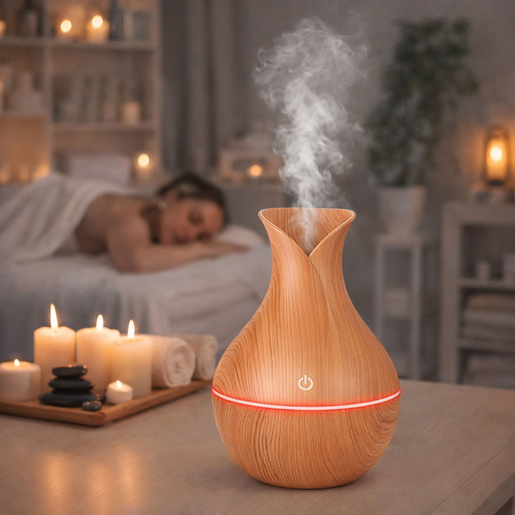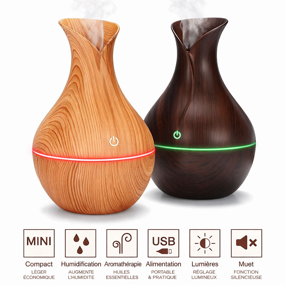 Diffuseur d’Huiles Essentielles Humidificateur Ultrasonique Effet Bois / Essenciel