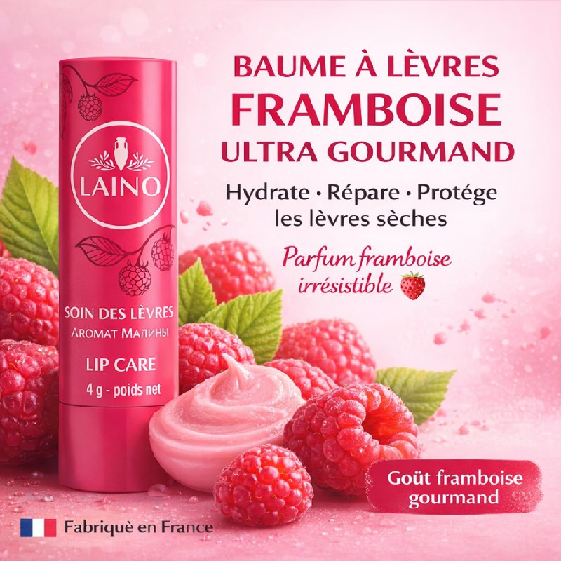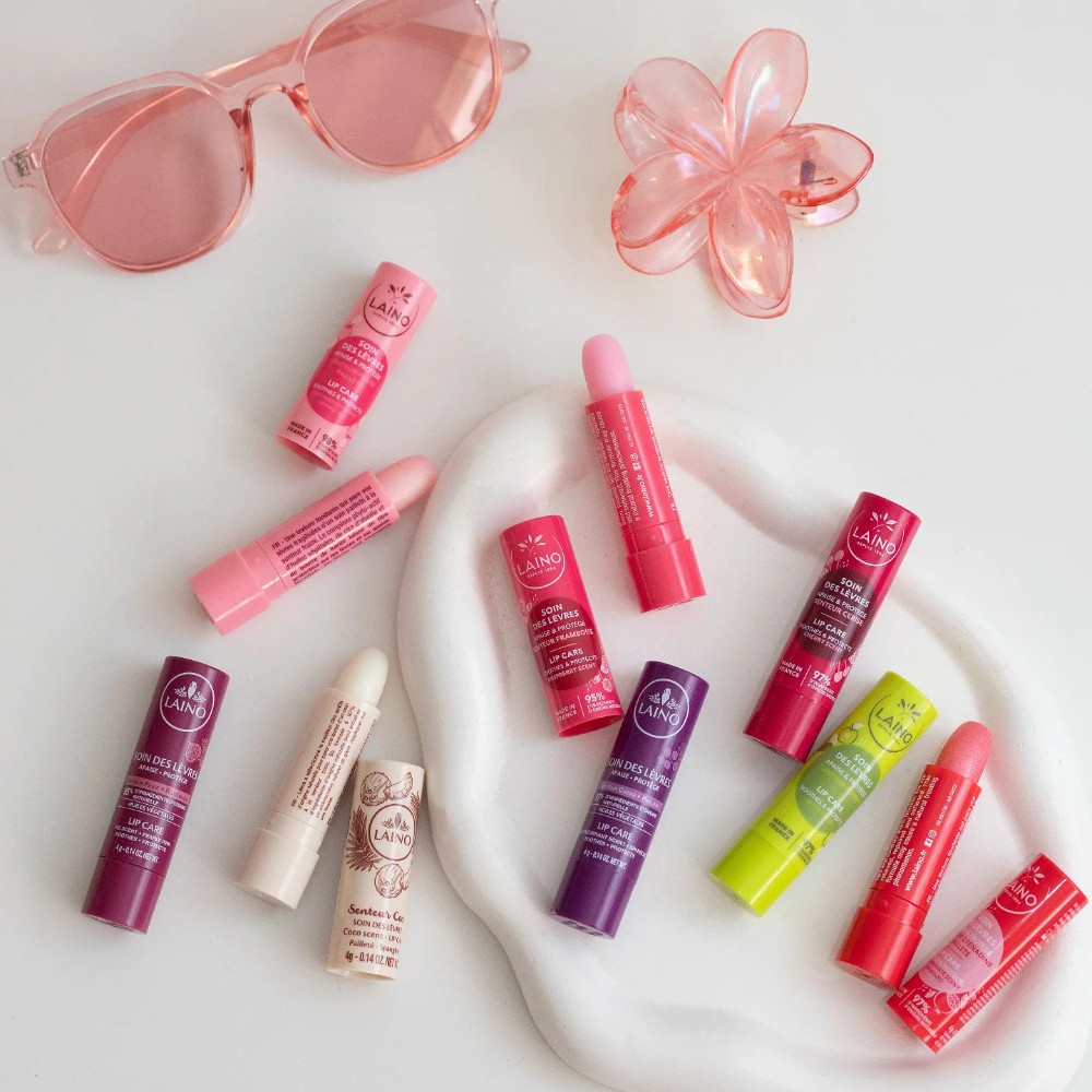 Le soin des lèvres framboise de Laino a été formulé à base d’ingrédients d’origine 97 % naturelle dans le but d’hydrater et de nourrir les lèvres fragilisées et abîmées.