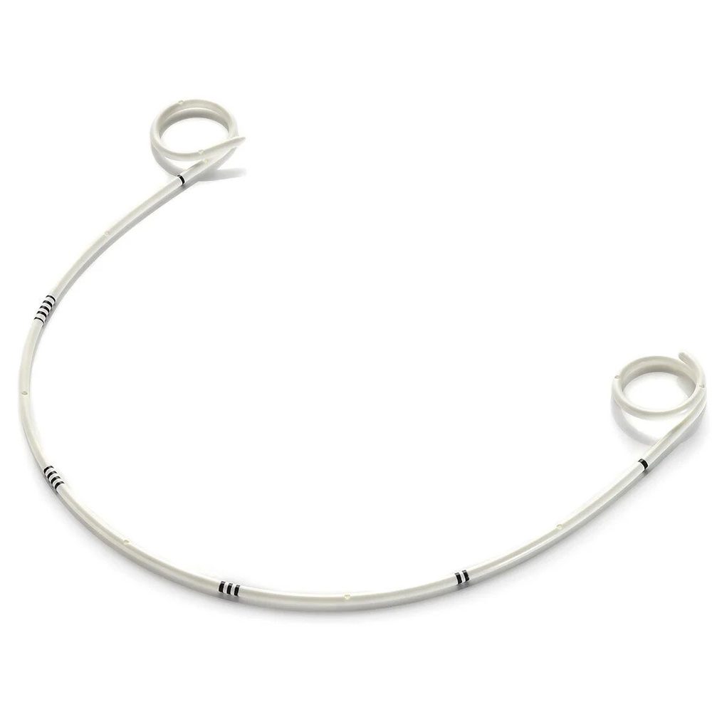 Des boucles en forme de J sont présentes aux deux extrémités pour maintenir le tube en place et empêcher la migration.