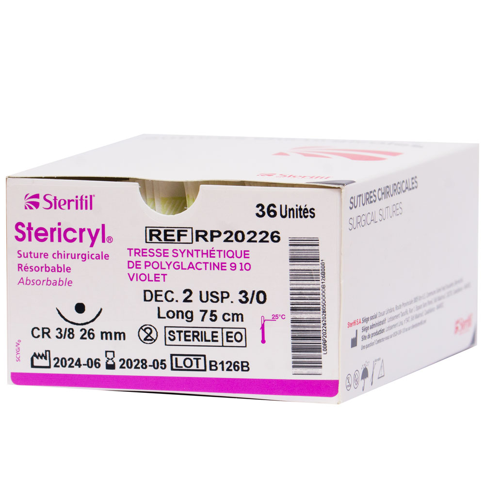 Les sutures chirurgicales résorbables Stericryl en polyglactine 910 sont conçues pour la fermeture et la ligature des tissus mous lors d’interventions chirurgicales. Le fil tressé synthétique offre une excellente maniabilité, une bonne tenue du nœud et un passage atraumatique dans les tissus.